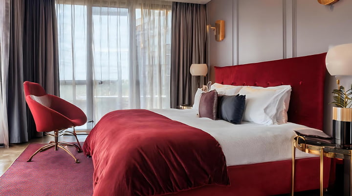 W każdym pokoju znajdziesz wygodne łóżko (king size lub twin), klimę, ciszę i możliwość całkowitego zaciemnienia. To przestrzeń do odpoczynku po długim wieczorze.